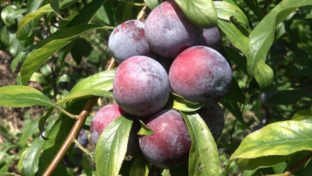 满山遍野的李子树上硕果累累,
